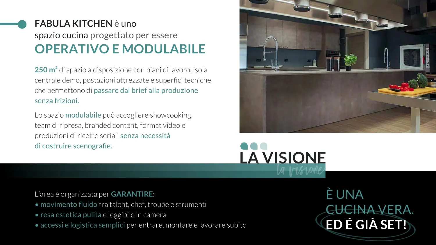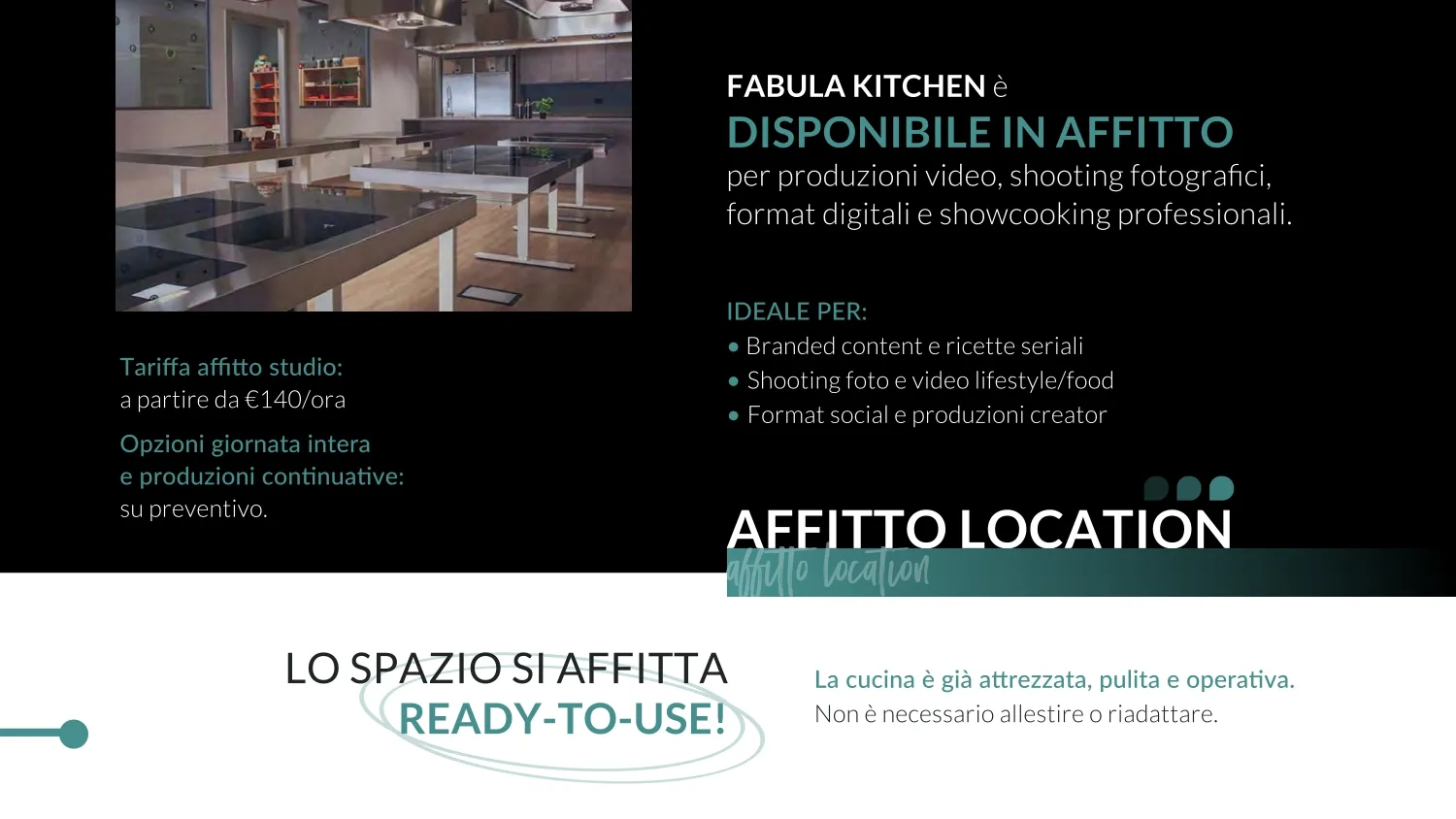 Fabula Kitchen è un hub creativo food nell’area di Milano con cucina professionale attrezzata, progettato per la creazione di contenuti food e produzioni digitali.